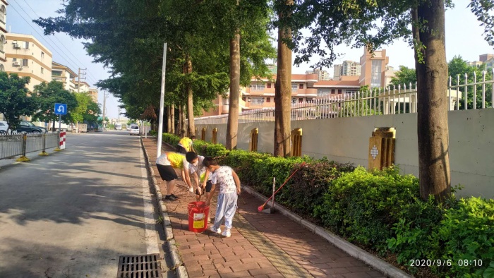 教務(wù)主任莫振佩帶領(lǐng)部分人員負(fù)責(zé)校門口廣學(xué)路的垃圾清理,主要包括移除校園周邊花圃里的枯樹枝,清除白色垃圾、煙頭,清掃路邊的樹葉等,大家?guī)R清潔工具很快行動(dòng),個(gè)別家長志愿者也主動(dòng)加入勞動(dòng)隊(duì)伍。德育主任許向陽帶領(lǐng)各年級(jí)級(jí)長們對(duì)各年級(jí)的教室、走廊、廁所等衛(wèi)生情況進(jìn)行全面排查,對(duì)有疏漏部分立即處理。德育主任梁超勝負(fù)責(zé)廚房的衛(wèi)生檢查以及校門口、班級(jí)、校車上疫情防控物資的落實(shí),如人體測溫儀、消毒液、防護(hù)口罩等。校長黃飛躍負(fù)責(zé)張貼校門口“一米間隔”防控標(biāo)識(shí)和宣傳標(biāo)語。經(jīng)過一個(gè)小時(shí)的奮戰(zhàn),自查整改工作初步完成。