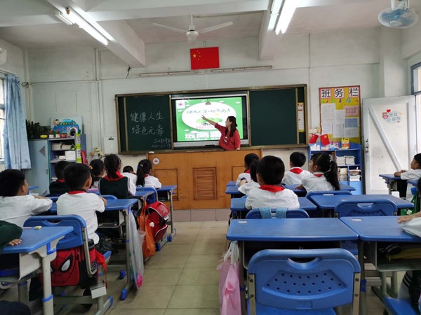 為進一步推進青少年禁毒宣傳預(yù)防教育,加大學(xué)校禁毒宣傳教育力度,擴大宣傳覆蓋面,增強未成年人自我保護意識,提高識毒、防毒、拒毒的能力。10月13日上午,翠景東方小學(xué)全體師生開展了“健康人生,綠色無毒”的主題班會活動,對學(xué)生進行禁毒預(yù)防教育宣傳。