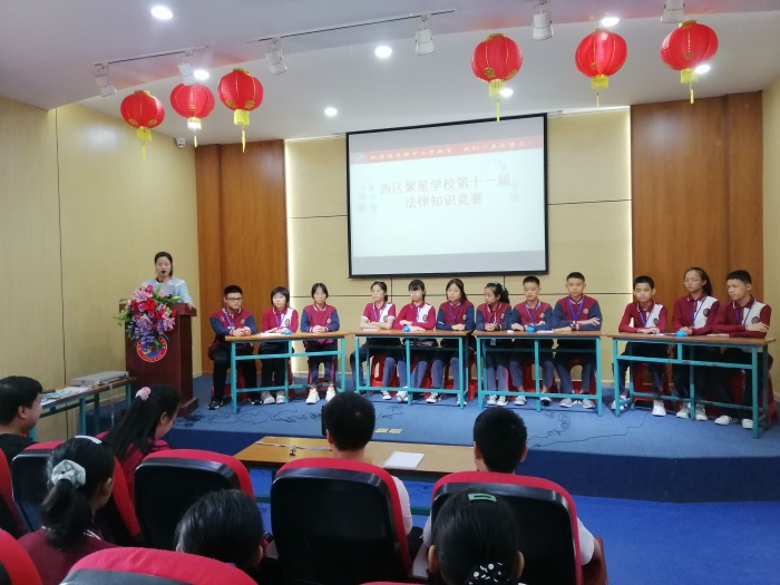 柏拉圖曾說:“法律的基本意圖是讓公民盡可能的愉悅。”法律知識進校園,人人學(xué)法心底寬,學(xué)法用法才能讓生活充滿更多正能量。10月27日下午,西區(qū)聚星學(xué)校舉行了中山市第十一屆法律知識競賽校園選拔賽。來自聚星學(xué)校初二級的4支隊伍12名參賽選手參與選拔。德育處副主任何培根、中學(xué)教務(wù)副主任田田和政史地組的老師們擔任此次比賽評委。