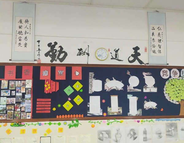 新學(xué)期伊始,該校班主任和全體學(xué)生對(duì)教室班級(jí)文化進(jìn)行精心設(shè)計(jì)與文化布置。該校各班制定了富有特色的班風(fēng)、班訓(xùn)、班主任寄語(yǔ)等,根據(jù)實(shí)際還增設(shè)了一些有特色的欄目。比如,公告欄、時(shí)事欄、誦讀欄、手抄報(bào)等。把“美”的教育滲透在班級(jí)文化的各個(gè)方面:在墻面上還設(shè)置了“小小書法家”“小小畫家”、“每周一星”“我真棒”、“學(xué)習(xí)園地”等區(qū)域,做到了讓“每一堵墻”成為“無聲的導(dǎo)師”。通過一輪的評(píng)比,每個(gè)年級(jí)都評(píng)出了一個(gè)一等獎(jiǎng)、兩個(gè)二等獎(jiǎng)和若干個(gè)三等獎(jiǎng)。最后把文化凸顯的三個(gè)優(yōu)秀班級(jí)參加區(qū)級(jí)特色班級(jí)評(píng)選候選:分別是六(4)班、六(2)班和二(1)班。