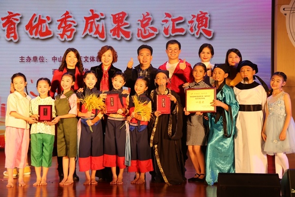 學(xué)校美育工作負(fù)責(zé)人劉敏輝介紹,為了參與今年這次美育節(jié),學(xué)校精心組織了多種形式的文體活動(dòng),孩子們通過(guò)參加書(shū)法、繪畫(huà)、合唱、舞蹈等比賽各顯神通,展示自己的藝術(shù)才華。最終,師生多幅優(yōu)秀作品參展,孩子們表演的朗誦及兩個(gè)舞蹈節(jié)目脫穎而出,成功拿到美育節(jié)綜合文藝匯演及頒獎(jiǎng)演出資格,在閉幕式當(dāng)晚進(jìn)行了精彩的展示。舞蹈指導(dǎo)老師、藝術(shù)科組長(zhǎng)賴麗玉老師表示,只要那天有比賽,老師們就要忙著準(zhǔn)備道具、給小演員們化妝,還要帶孩子們彩排、吃飯、管理他們的紀(jì)律和安全。雖然很忙碌、很辛苦,但看到孩子們的變化和成長(zhǎng),自己心里感到由衷的高興。