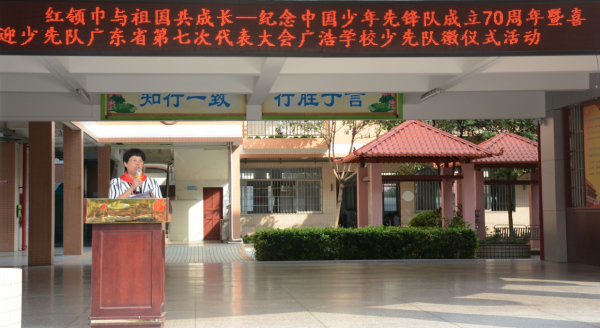 為慶祝少先隊(duì)建隊(duì)70周年, 2019年10月12日上午,廣浩學(xué)校舉行了莊嚴(yán)的“紅領(lǐng)巾與祖國(guó)共成長(zhǎng)”慶祝中國(guó)少年先鋒隊(duì)建隊(duì)70周年微儀式活動(dòng)。