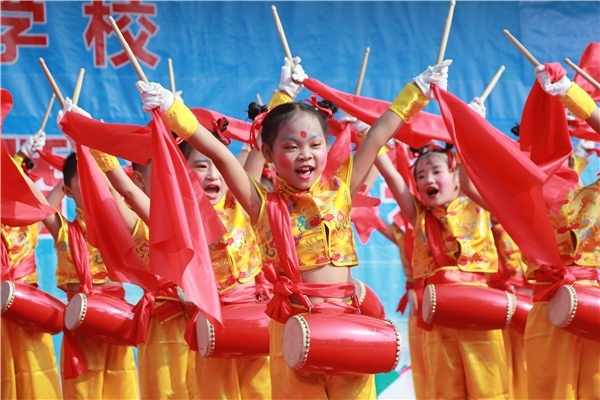 緊接著,向出席會(huì)議各位領(lǐng)導(dǎo)和家長(zhǎng)、來(lái)賓、新長(zhǎng)江學(xué)校全體師生進(jìn)行了“立德樹人”才藝展示,低年級(jí)學(xué)生的非洲鼓,口風(fēng)琴《小星星》,葫蘆絲演奏《荷塘月色》,四年級(jí)學(xué)生舞蹈《幸福島》,古箏演奏等,絲絲入扣,那優(yōu)美的舞姿,優(yōu)雅歡快跳躍的音符,悅耳動(dòng)聽的旋律給運(yùn)動(dòng)會(huì)開幕式推向了高潮!