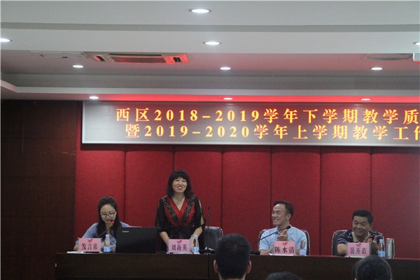 為了總結(jié)2018-2019學(xué)年第二學(xué)期教學(xué)工作,部署2019-2020學(xué)年第一學(xué)期教學(xué)任務(wù),西區(qū)文體教育局、西區(qū)教育事務(wù)指導(dǎo)中心于2019年9月11日下午兩點(diǎn)半召開了全區(qū)教育教學(xué)總結(jié)工作會(huì)議,會(huì)上新長江學(xué)校教務(wù)主任王松桂就如何提高新長江初中教學(xué)質(zhì)量做了經(jīng)驗(yàn)分享。王松桂主任說,上學(xué)期,新長江學(xué)校在新的一屆領(lǐng)導(dǎo)班子帶領(lǐng)下,始終打造高效課堂建設(shè),教育教學(xué)質(zhì)量穩(wěn)步提升,成績的取得來自于西區(qū)教體局的科學(xué)指導(dǎo)、政府的大力支持和全體教職員工對質(zhì)量興校的統(tǒng)一認(rèn)識,新長江學(xué)校以抓質(zhì)量為核心,深化課堂改革,打造高效課堂建設(shè)初有成效。