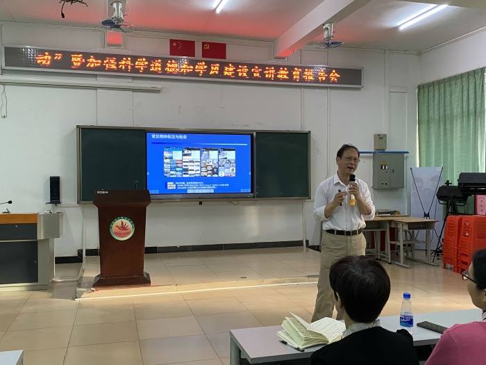 10月19日下午,金風(fēng)送爽,水碧山青。中國(guó)科學(xué)院自動(dòng)化研究所研究員盧漢清教授,為北區(qū)中學(xué)初二級(jí)學(xué)生送來(lái)2020年中山市“中國(guó)科學(xué)院老科學(xué)家演講團(tuán)進(jìn)校園活動(dòng)”暨加強(qiáng)科學(xué)道德和學(xué)風(fēng)建設(shè)宣講教育報(bào)告會(huì)。北區(qū)中學(xué)趙翠顏校長(zhǎng)、博愛(ài)小學(xué)虞彩花校長(zhǎng)出席活動(dòng)。