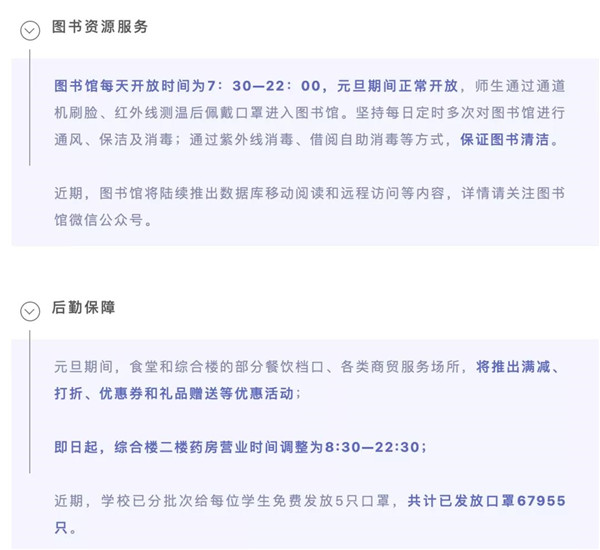 在大連海事大學,學校將承擔同學們因放假時間調(diào)整而產(chǎn)生的退票費、改簽費,提升校園網(wǎng)絡(luò)質(zhì)量。元旦期間,學校還為全體學生準備了總價值40萬元就餐抵值券和2萬套果盒,向大家送去新年的慰問和祝福。