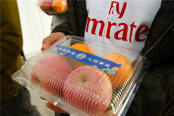 一套果盒由2個蘋果和2個橙子組成,蘋果甘甜可口,寓意平平安安;橙子美味多汁,寓意心想事成。簡單的組合,不僅是學校送給同學們的新年禮物,更代表學校對同學們滿滿的祝福和關(guān)愛。