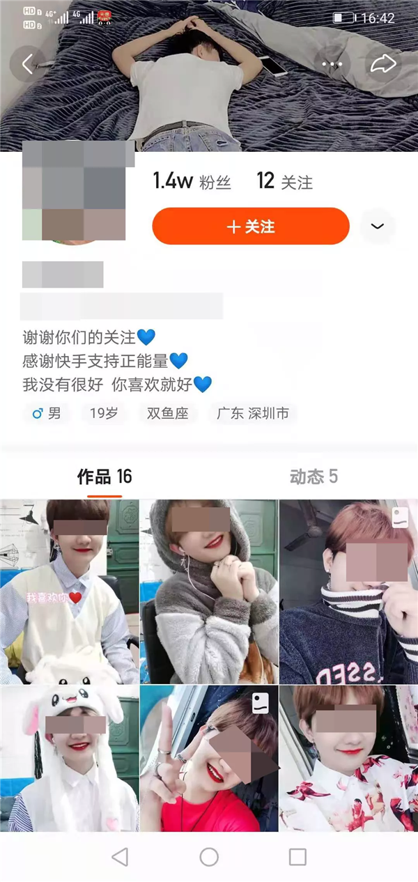 這還不止,這個(gè)犯罪嫌疑人李某,摘掉假發(fā),脫掉絲襪,還有個(gè)男性的賬號,粉絲達(dá)1.4萬。