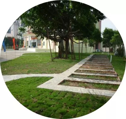 人是環(huán)境的產(chǎn)物,為使孩子們自然潛能得以健康生長(zhǎng),戶外活動(dòng)場(chǎng)地寬闊舒展,有4棵歷史悠久的大榕樹、兒童沙池、兒童戲水池、戶外果園、有機(jī)菜園、跑道、大操場(chǎng)及戶外森林兒童樂(lè)園;有規(guī)范的戶外運(yùn)動(dòng)場(chǎng),配置了大型室外玩具。風(fēng)車藝術(shù)生態(tài)長(zhǎng)廊、迷宮區(qū)、干濕沙區(qū)、種植區(qū)、泥巴廚房、攀爬區(qū)等。