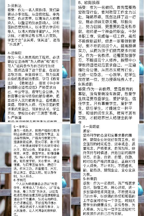 在本次的線上集體學(xué)習(xí)中,通過(guò)對(duì)8起典型問(wèn)題的了解和反思,龍江城小全體教師深刻認(rèn)識(shí)到師德“紅線”不可逾越。在嚴(yán)守“紅線”的同時(shí),要謹(jǐn)記自己肩負(fù)的職責(zé)和使命,不斷錘煉教育報(bào)國(guó)之志,時(shí)刻堅(jiān)守為黨育人、為國(guó)育才初心,自覺(jué)堅(jiān)守精神家園、堅(jiān)守人格底線,率先垂范、以身作則,培養(yǎng)擔(dān)當(dāng)民族復(fù)興大任的社會(huì)主義建設(shè)者和接班人。