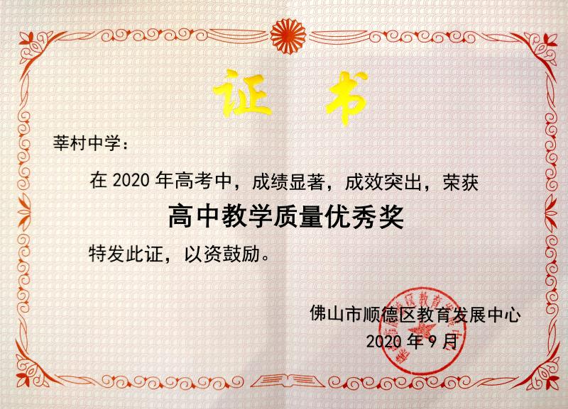 此前,在2020年中考質(zhì)量分析會上,我校榮獲了“順德區(qū)2020年中中教學質(zhì)量優(yōu)秀獎”!