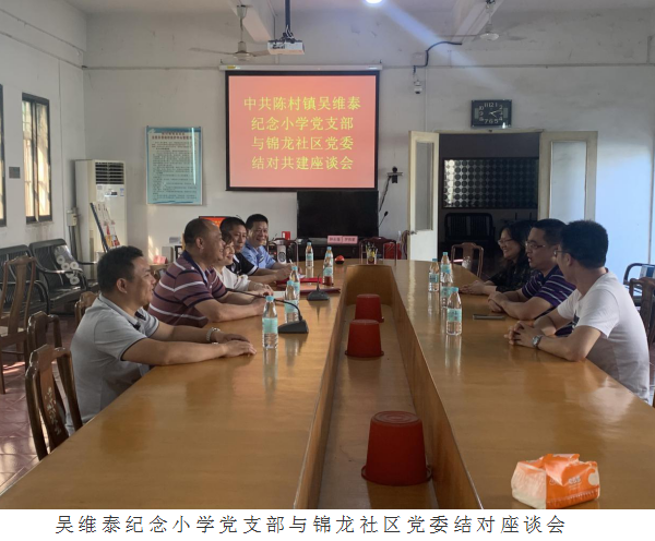 2020年6月23日下午,陳村鎮(zhèn)吳維泰紀念小學黨支部代表在黨支部書記劉廣平帶領下到錦龍社區(qū)進行“雙報到”結對工作,為了更深入了解各黨組織的情況,雙方代表進行了親切的座談。