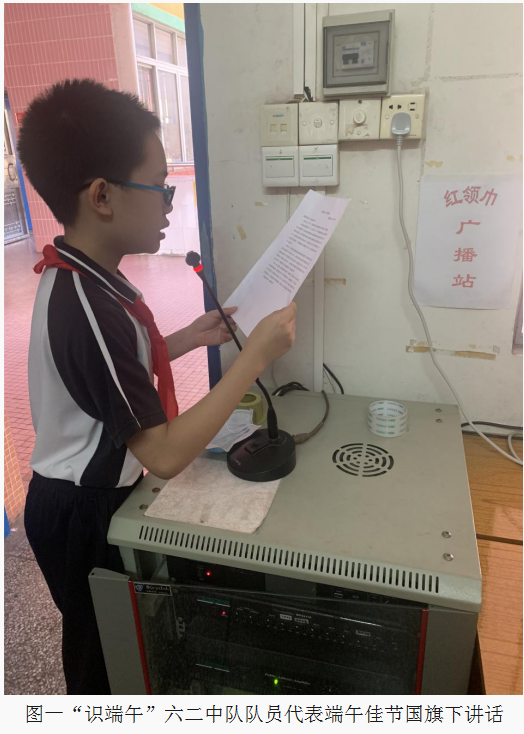 周一升旗儀式中,六二中隊(duì)隊(duì)員代表進(jìn)行了關(guān)于傳統(tǒng)文化端午佳節(jié)的國旗下講話。本次講話主題鮮明,不僅讓廣大少先隊(duì)員深入了解和感受了中華傳統(tǒng)節(jié)日文化的博大精深,提高了隊(duì)員們學(xué)習(xí)傳統(tǒng)文化的意識(shí),增強(qiáng)了民族自豪感,激發(fā)了他們的愛國主義熱情。