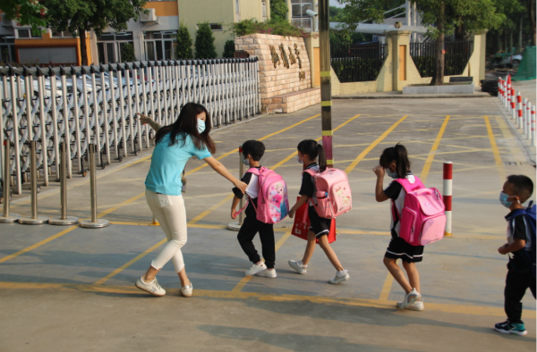 為確保新生報(bào)到工作高速、高效、有序的進(jìn)行,學(xué)校前期進(jìn)行了嚴(yán)格分工、周密部署和精心準(zhǔn)備。家長(zhǎng)把小朋友帶到校門(mén)口,由老師分批帶進(jìn)課室。孩子們背著書(shū)包,高高興興地踏進(jìn)干凈而又溫馨的新教室,班主任早已在課室等待學(xué)生的到來(lái)。老師們親切的笑容緩解了同學(xué)們的緊張焦慮情緒,在互相認(rèn)識(shí)和了解中漸漸消除了陌生感。