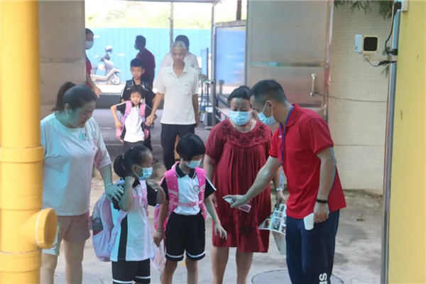 8月28日上午,校領(lǐng)導(dǎo)和老師們?cè)陂T口迎接新生,孩子們錯(cuò)峰上學(xué),老師給每位進(jìn)校的學(xué)生測(cè)量體溫、洗手消毒,指引家長(zhǎng)帶著孩子找到自己所在的班級(jí)。就這樣,孩子們懷著激動(dòng)、好奇的心情踏入校園、走進(jìn)教室,開啟了自己的小學(xué)生活之旅。