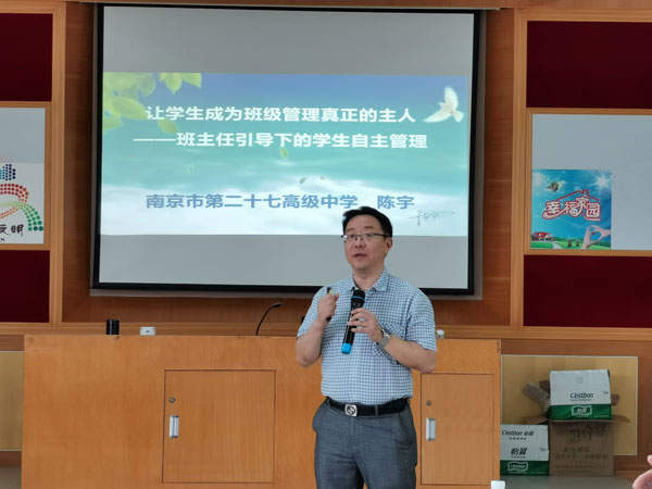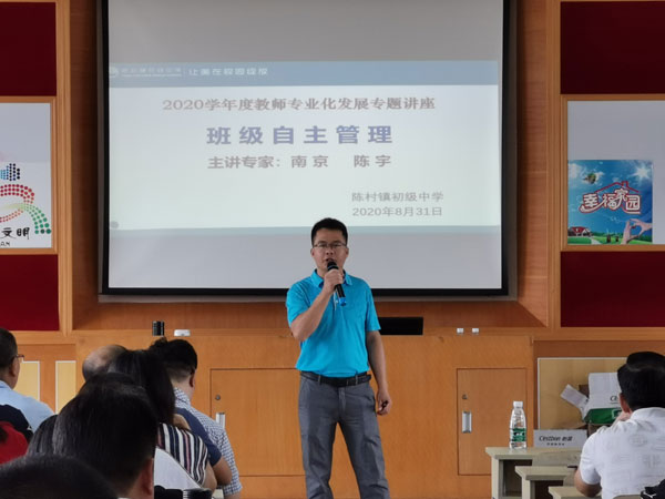 暑去秋來,學期伊始;使命催征,時不我待。為進一步貫徹2020年陳村鎮(zhèn)教育高質量發(fā)展座談會的精神,同時為了培養(yǎng)教師的德育素養(yǎng),獲取多元化的教育途徑,了解德育新動態(tài),全面提升教師的育德水平和創(chuàng)新能力,打造一流的師資隊伍,2020年8月31日陳村鎮(zhèn)初級中學邀請南京市第二十七高級中學陳宇老師為全校教師做了題為“讓學生成為班級管理真正的主人――班主任引導下的學生自主管理”的培訓講座。