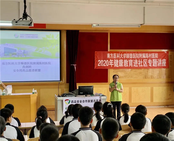 為了普及小學(xué)生的藥品安全知識(shí),提高小學(xué)生的用藥安全意識(shí),南方醫(yī)科大學(xué)順德醫(yī)院附屬陳村醫(yī)院藥劑科李莉藥師帶領(lǐng)藥劑師志愿團(tuán)隊(duì),于9月25日下午為五年級(jí)的全體師生開展了一堂生動(dòng)有趣的安全用藥講座。
