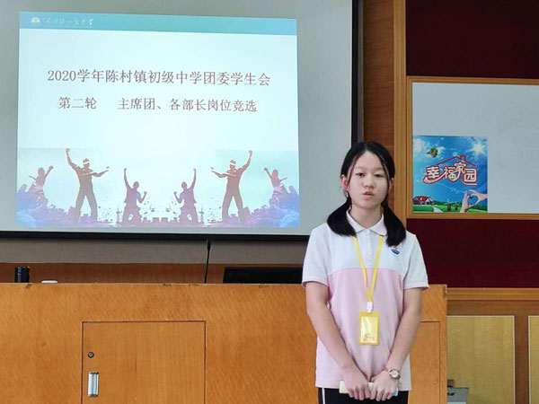 陳村鎮(zhèn)初級(jí)中學(xué)舉辦團(tuán)委學(xué)生會(huì)主席部長競(jìng)崗活動(dòng)