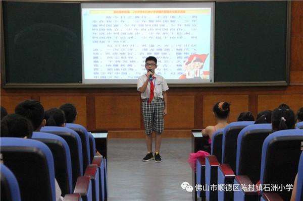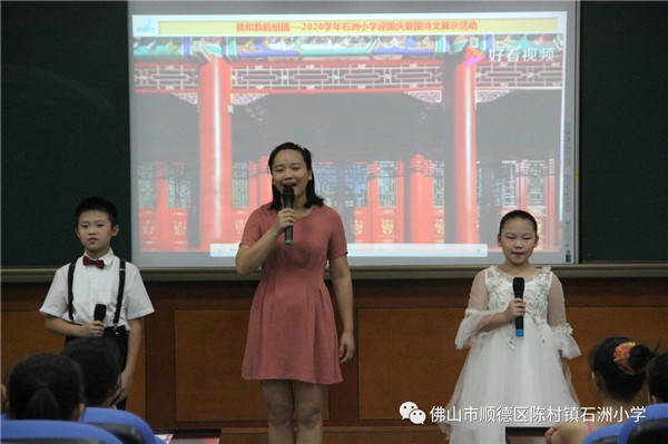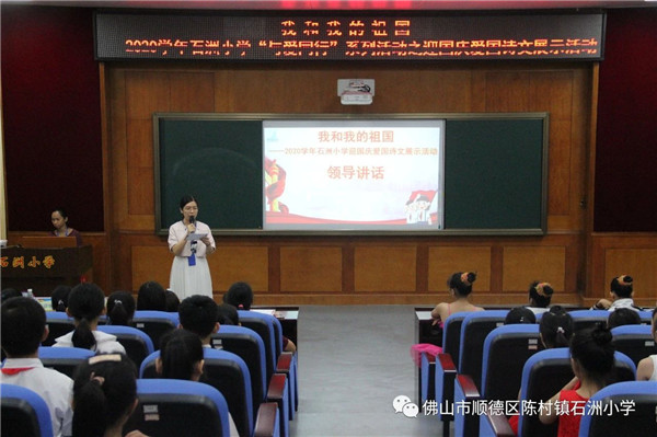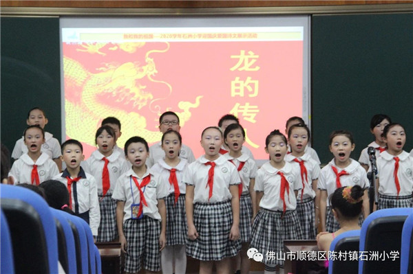 2020年9月28日下午,石洲小學(xué)電教室主會場、各班分會場上的陽光少年們愛國熱情高漲,歌舞《我和我的祖國》拉開了本次活動的帷幕。緊接下來的節(jié)目形式多樣,豐富多彩。詩歌朗誦《我驕傲 我是中國人》、《中華頌》慷慨激昂,把對祖國的贊美與熱愛表現(xiàn)得淋漓盡致?!吨戮匆痪€抗疫英雄》,感人至深,聽者無不感動于“逆行者”抗疫精神的偉大。一曲《龍的傳人》那稚嫩的聲音,純真的笑容,愛國的情懷贏得了在場所有觀眾的陣陣掌聲……隨后,何培雯副主任對本次活動進(jìn)行了小結(jié),贊揚了各年級組、各班級展現(xiàn)了石洲小學(xué)陽光少年們積極向上,奮發(fā)進(jìn)取的精神面貌。經(jīng)過激烈的角逐最后《國家》榮獲最佳表演獎、《我和我的祖國》榮獲最佳創(chuàng)意獎、《龍的傳人》榮獲陽光風(fēng)采獎等各項獎項。