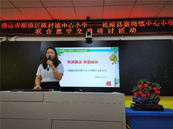 隨后,植麗娟主任以《和潤致遠(yuǎn) 和諧成長》為主題進(jìn)行專題講座。講座中,植麗娟主任詳細(xì)介紹了陳村鎮(zhèn)中心小學(xué)“和潤教育”的四個做法和經(jīng)驗(yàn),結(jié)合這次帶來的3節(jié)精品課例介紹和潤課堂教學(xué)模式。