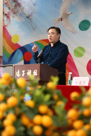 繽紛的氣球、金黃的桔子、大大的“?!弊?、紅紅的中國結(jié)、寓言深刻的“龍門”;特制的沉甸甸的獎杯、紅彤彤的獎狀、意義非凡的校長禮物……隆重的會場布置和精心的籌備,增添了熱烈喜慶的氣氛,讓收獲的喜悅灑落會場的每一個角落,讓昂揚的奮發(fā)向上洋溢于每一張笑臉。