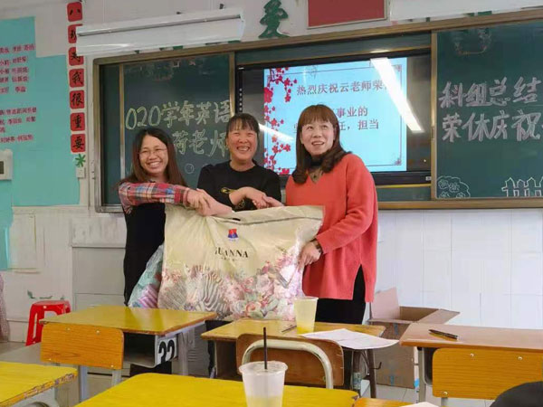 榮退儀式上,謝文忠校長(zhǎng)代表學(xué)校為云處荷老師頒發(fā)了紀(jì)念品。英語科組教師也為云處荷老師舉辦了慶祝榮退活動(dòng)并贈(zèng)送了禮物。