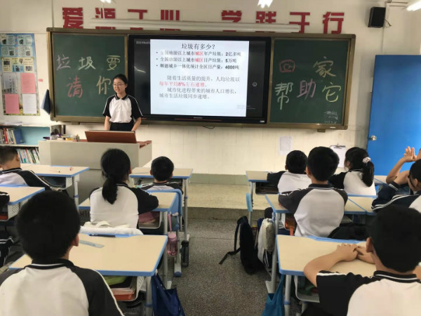 同時,其他年級的學(xué)生在班里舉行“垃圾要回家,請您幫助它”主題班會。在班會課上,低年級由班主任帶領(lǐng)、高年級有班干部帶領(lǐng)開展班會課,利用多媒體,向?qū)W生宣傳了垃圾分類的知識:什么是垃圾分類、垃圾分類標(biāo)準(zhǔn)、垃圾分類標(biāo)識,以及不實行垃圾分類的危害。學(xué)生們認(rèn)真傾聽學(xué)習(xí),樹立節(jié)約資源和保護(hù)環(huán)境的意識。