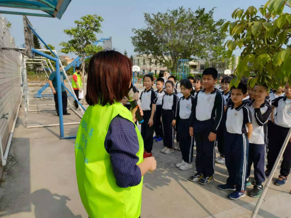 鎮(zhèn)執(zhí)法辦的志愿者帶領(lǐng)大都小學(xué)四年級學(xué)生在校園內(nèi)進(jìn)行宣傳活動。通過宣傳講解相關(guān)知識、知識競賽和垃圾分類小游戲等豐富多樣的形式,讓學(xué)生掌握垃圾分類知識,增強了垃圾分類教育的靈活性、趣味性和創(chuàng)造性。