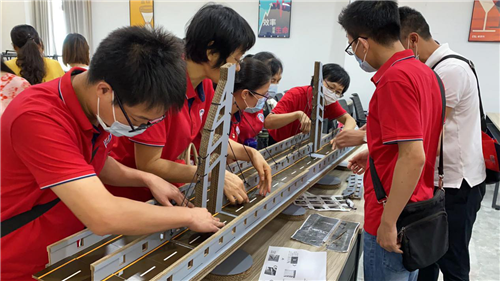 在導(dǎo)游的帶領(lǐng)下,黨員教師們首先實(shí)地參觀了建造基地。隨后在會(huì)議室,聆聽《港珠澳大橋與灣區(qū)橋梁亮點(diǎn)》講座,了解大橋建設(shè)工作和運(yùn)營情況,學(xué)習(xí)建設(shè)者不怕困難、自主創(chuàng)新的精神。最后分組搭建港珠澳大橋模型,在模型的搭建過程中更充分地感受這項(xiàng)世界級的超級工程的偉大,充分感受中國建造的力量之雄偉。