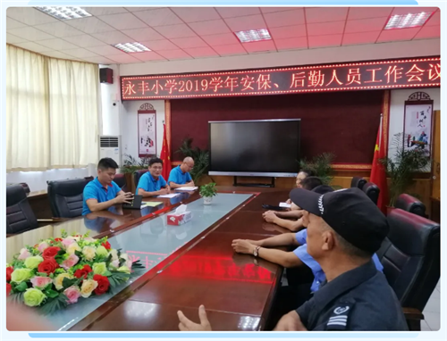 為加強永豐小學的后勤管理,確保暑假及下學期工作安全有序,我校于7月16日下午舉行了2019學年安保、后勤人員工作會議。會議由吳凡校長主持,鄧源強主任、吳康明副主任和安保、保潔、文員等六名后勤人員參加了會議。