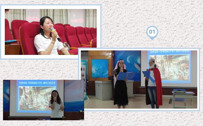 活動(dòng)第二個(gè)流程,由海尾小學(xué)陳翠校長(zhǎng)分享閱讀世界戲劇名著《羅慕路斯大帝》的感悟。陳校長(zhǎng)從“戲劇沖突的線性發(fā)展與聚焦模式”、“戲劇沖突的深層洞察與心理表征”、“戲劇結(jié)構(gòu)的張力場(chǎng)與審美空間”幾個(gè)維度跟學(xué)員們一起探討有關(guān)“祖國(guó)與個(gè)人”的深刻命題。