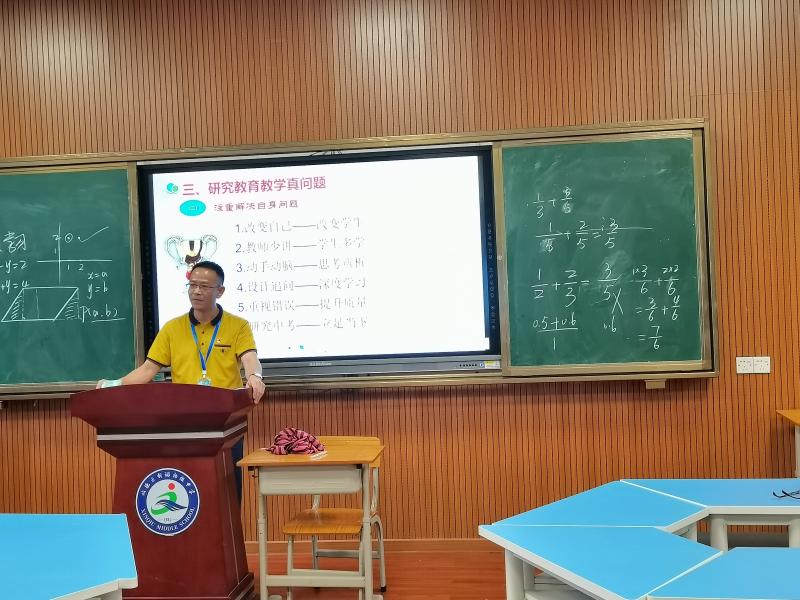 最后,新球中學(xué)何興球校長在總結(jié)中肯定數(shù)學(xué)科組過去所取得的成績,也表示未來可期,對于現(xiàn)在分層次教學(xué),針對各個層次如何上好數(shù)學(xué)課,如何利用現(xiàn)在的小組合作模式,均提出了很好的建議,也特別提到鄧老師所講的“注重解決自身問題”,希望老師們都爭做一個好老師。