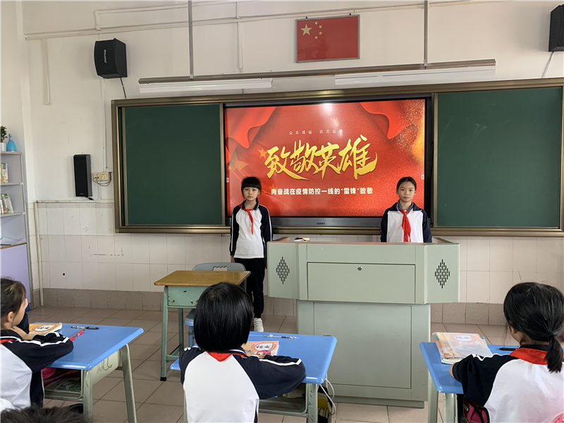 為弘揚抗疫精神,學(xué)習(xí)醫(yī)護人員愛國、責(zé)任、擔(dān)當(dāng)、勇敢、刻苦、奉獻等英雄品質(zhì),在中隊活動課上,老師和同學(xué)們開展了以“致敬抗疫英雄”為主題的抗疫英雄事跡班會。同學(xué)們沉浸在故事中久久不能忘懷,樸素的愛國主義之情在幼小的心靈萌芽生根。 環(huán)城小學(xué)通過開展形式多樣的主題活動,表達了全體師生對祖國的祝福和熱愛?;厥走^去,看著祖國71年來取得的成就,我們無比的感動,無比的驕傲,無比的驚嘆!這一切都是幾代人用勤勞的雙手奮斗出來的!展望未來,我們更加堅定自己的步伐,認真勤勉,好好學(xué)習(xí),天天向上,成為新時代的愛國主義和傳統(tǒng)文化的傳承者,從小立志向、有夢想,努力成長為擔(dān)當(dāng)民族復(fù)興大任的新時代少年!