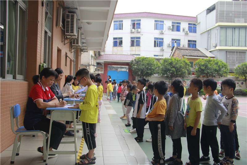 下午兩點(diǎn)半,驗(yàn)收活動(dòng)正式開始!一年級的孩子們在本班語文老師的帶領(lǐng)下排著隊(duì)依次站在主考老師面前,一絲不茍地讀著拼音。