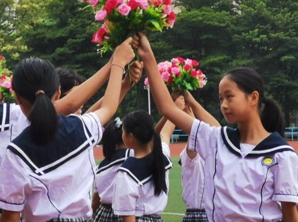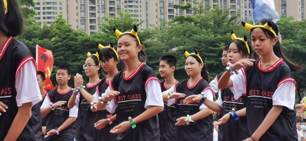 上午八時(shí)許,主席臺(tái)上,來(lái)自各級(jí)教育部門的領(lǐng)導(dǎo)、學(xué)校行政、社區(qū)嘉賓、家長(zhǎng)代表、教師代表、評(píng)委等齊聚一堂。當(dāng)雄壯的《運(yùn)動(dòng)員進(jìn)行曲》響起,國(guó)旗方隊(duì)、校旗會(huì)旗方隊(duì)、舉牌方隊(duì)、花隊(duì)、彩旗隊(duì)、家長(zhǎng)義工隊(duì)等方陣踏著整齊的節(jié)拍,邁著矯健的步伐從主席臺(tái)前經(jīng)過(guò),營(yíng)造了開(kāi)幕式莊嚴(yán)隆重而朝氣蓬勃的氛圍。接著,全校五十多個(gè)班級(jí)的入場(chǎng)式方陣依次閃亮登場(chǎng)。形式多樣的隊(duì)形、設(shè)計(jì)精致的班服、妙趣橫生的道具、多姿多彩的舞蹈、動(dòng)感十足的音樂(lè)、創(chuàng)意無(wú)限的才藝,掀起了一波波轟動(dòng),贏得了在場(chǎng)嘉賓和師生一陣陣熱烈的掌聲。