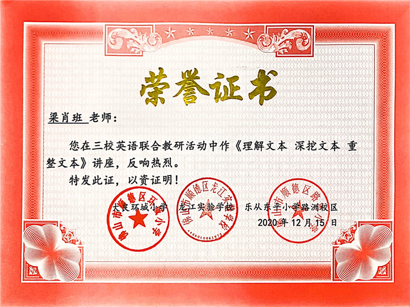 為優(yōu)化教研模式,提升教研實(shí)效,扎實(shí)促進(jìn)青年教師的和諧發(fā)展,不斷提升課程實(shí)施水平,打造“高效課堂”,12月15日下午,我校英語(yǔ)主管行政梁肖班主任帶領(lǐng)廖安儀等老師參加了在樂(lè)從東平小學(xué)路洲校區(qū)舉辦的三校英語(yǔ)聯(lián)合教研活動(dòng)。