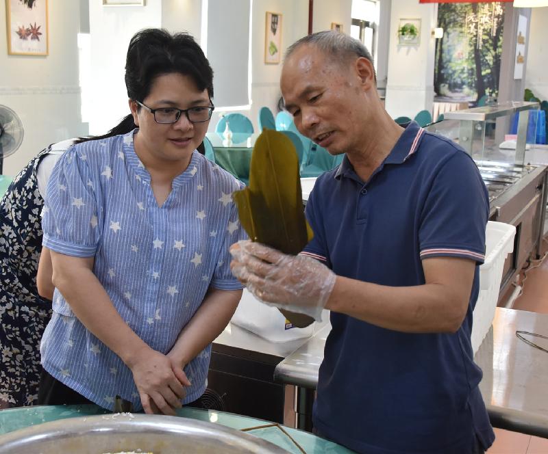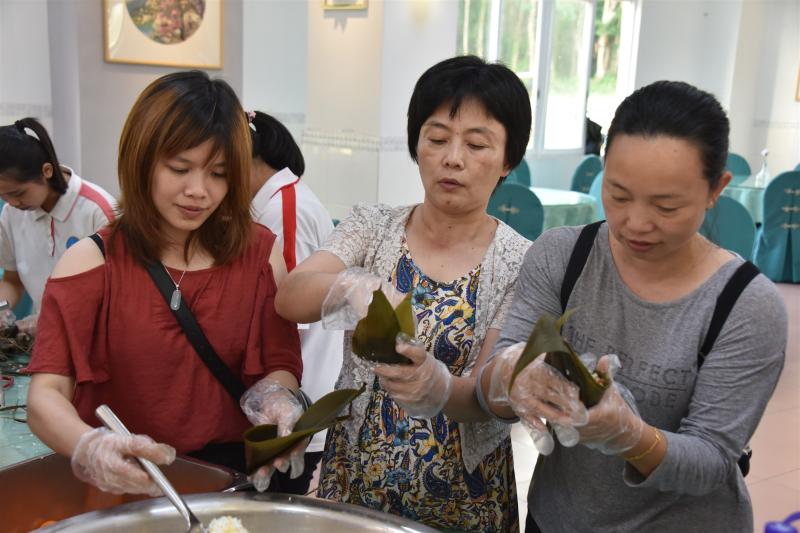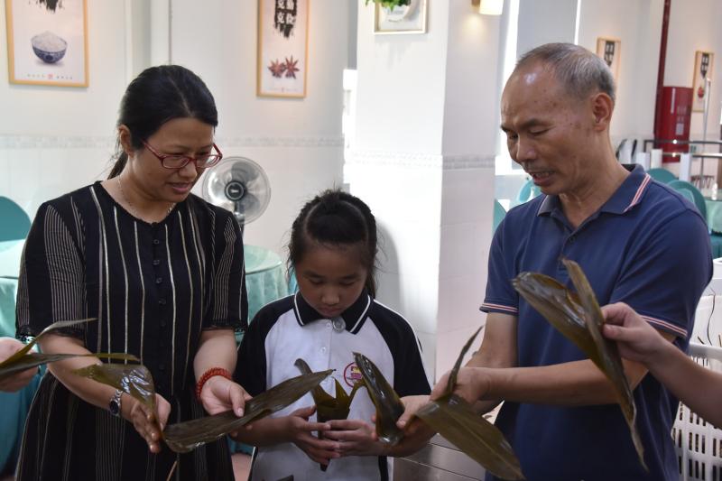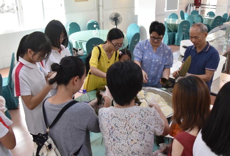 在此次活動(dòng)中,以教師帶學(xué)生的方式,領(lǐng)略傳統(tǒng)粽子的做法。