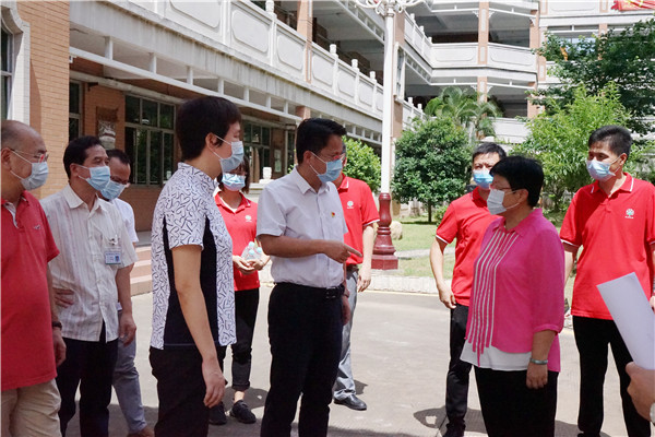 7月2日上午,順德區(qū)區(qū)委副書記、區(qū)政法委書記王勇、區(qū)教育局局長閔樂萍一行到容山中學(xué)開展高考防疫專項督查工作。容山中學(xué)校長、考點主考區(qū)淑玲及相關(guān)行政陪同領(lǐng)導(dǎo)到校園相關(guān)高考功能場室進(jìn)行巡視。