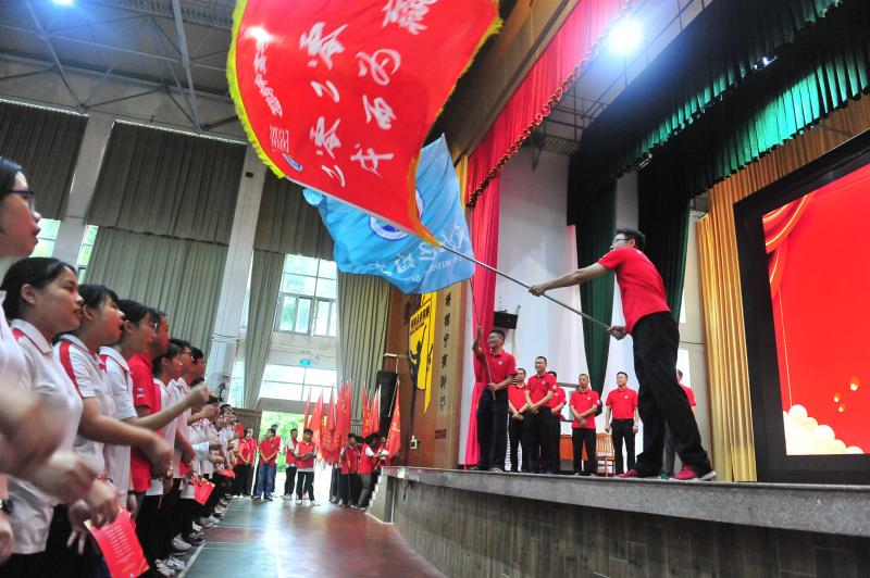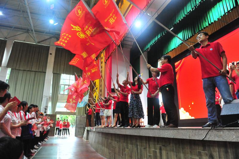 三授班旗――全體行政為高三全體班主任授班旗。班旗是隊伍的堅強(qiáng)陣地,它是我們戰(zhàn)斗力量的迸發(fā)!