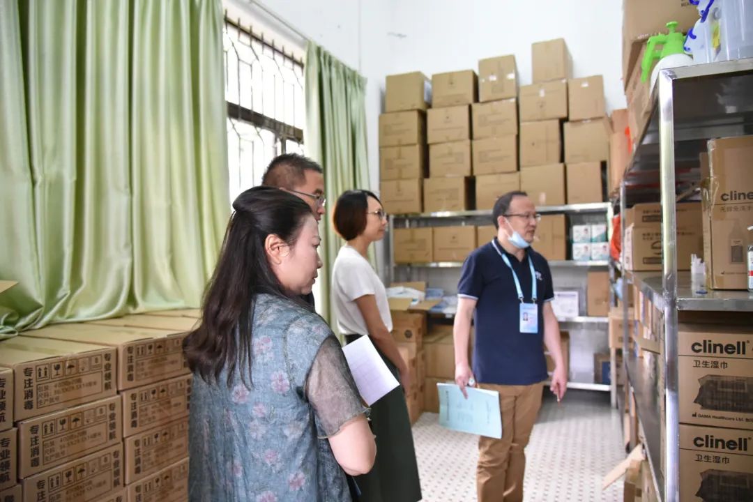 隨后,區(qū)督學(xué)走訪校園,了解我校配餐流程,參觀防控物資儲(chǔ)備室、校醫(yī)室、隔離室等的場(chǎng)所。