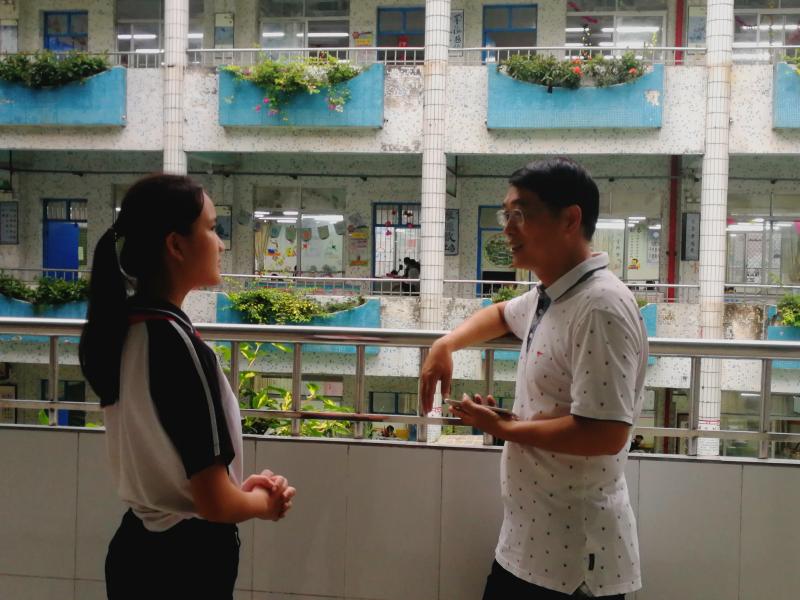 圖2:李金龍校長(zhǎng)親切地與學(xué)生交談