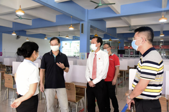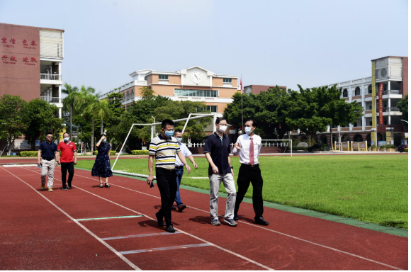 2020年8月29日上午,順德區(qū)教育局黨組書記陳宇瑩偕同區(qū)教育局辦公室副主任羅泉良來到順德華僑中學(xué),對(duì)華僑中學(xué)校園疫情防控和新學(xué)期開學(xué)準(zhǔn)備工作進(jìn)行督查檢查。學(xué)校黨總支書記、校長吳劍平等行政人員陪同督導(dǎo)檢查。