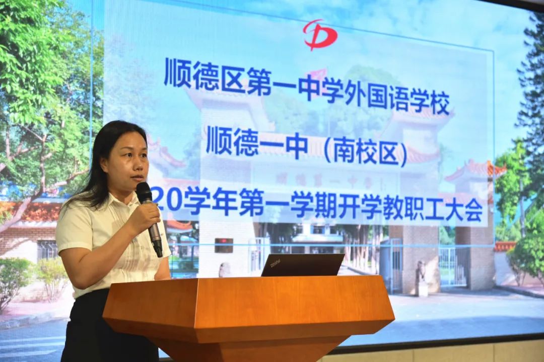 教師團(tuán)隊(duì)是學(xué)校發(fā)展的核心競(jìng)爭(zhēng)力。李淑敏主任首先向全體教職工介紹本學(xué)期加入順德一中外國(guó)語(yǔ)學(xué)校和順德一中(南校區(qū))大家庭的新教師,新學(xué)期,迎來(lái)新氣象,新教師,造就新希望!