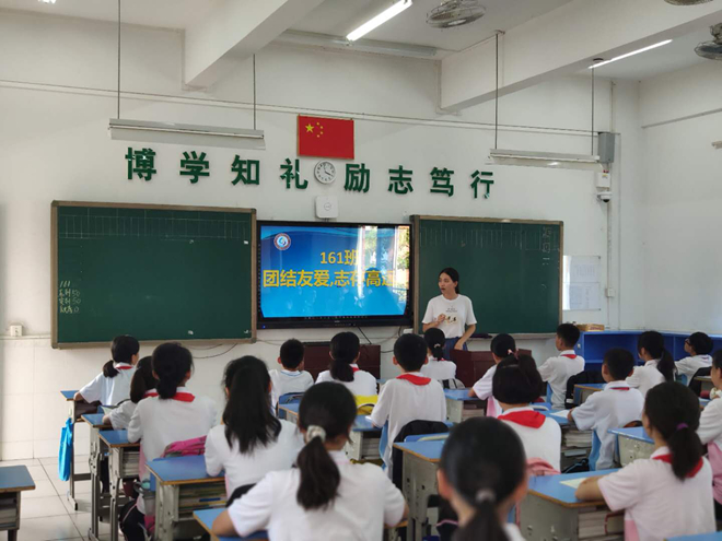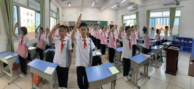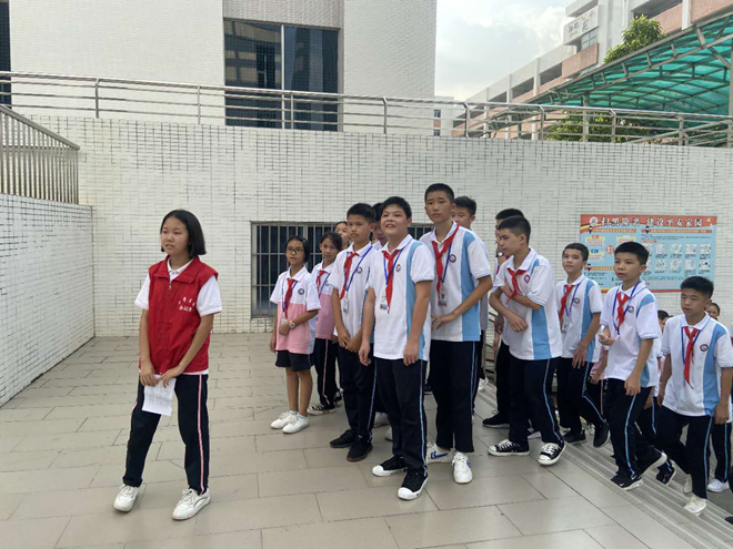 班會結(jié)束后,我們還進(jìn)行了一個非常有意義的活動,就是“傳經(jīng)送寶”――初二師哥師姐帶我們參觀校園,師哥師姐個個能言會道,向我們生動地介紹了校園的“名勝”打卡:校訓(xùn)廣場、禁毒長廊、心理咨詢室和運動場等。