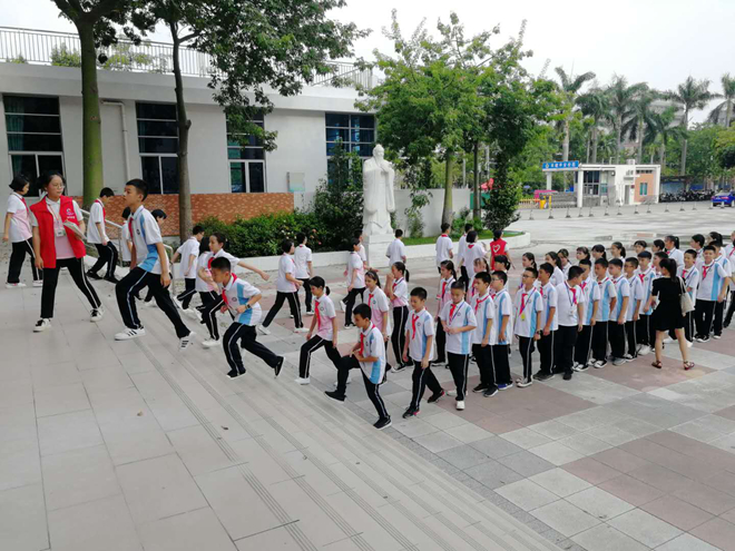 (老師統(tǒng)一全級進(jìn)行日常行為規(guī)范訓(xùn)練)