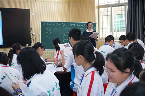在課例展示中,英語科組萬娜青老師帶領(lǐng)高一(6)班的學生一起學習了北師大新版教材必修一第一單元的第三課Your Life Is What You Make It。萬老師的課堂以小組合作形式,充分運用新課標理念,層層推進,幫助學生解讀文本,讓學生在語篇中既收獲了語言知識,又受到了正確價值觀的熏陶。