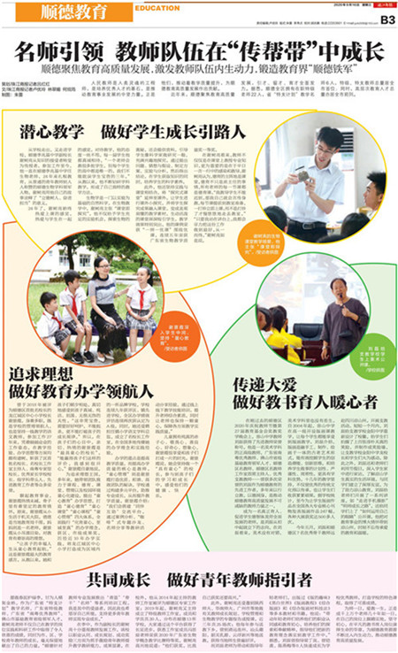 近日,在順德區(qū)2020年慶祝教師節(jié)暨第27屆教育基金會獎教獎學晚會上,我校教師劉磊獲得了先進教師榮譽稱號。昨日,珠江商報教育版報道了我校劉磊老師的教育事跡。
