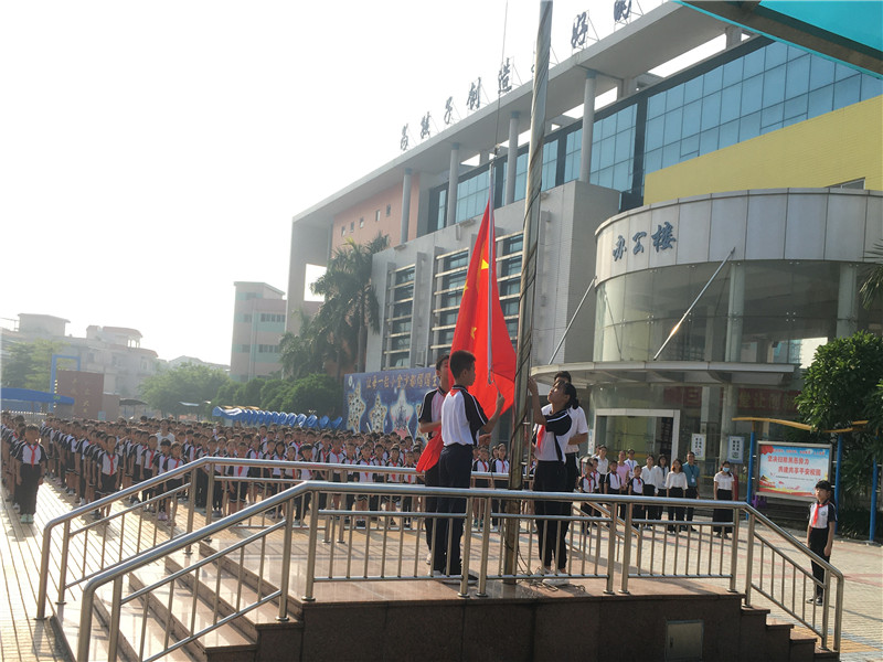 由于場地范圍有限,但是同學(xué)們參加典禮的熱情無限。只見同學(xué)們一個個揚(yáng)著笑臉,有序地到指定地點(diǎn)站好,靜待典禮開始,整個會場寂靜安然,秩序良好。典禮由麥國才主任主持,首先是升旗儀式,五星紅旗冉冉升起,整齊的隊禮,莊嚴(yán)的儀式,傳達(dá)出全體師生對祖國的尊重與熱愛!典禮在莊嚴(yán)的國歌聲中拉開了序幕。