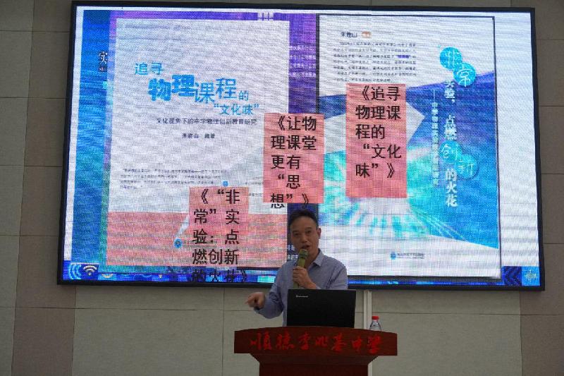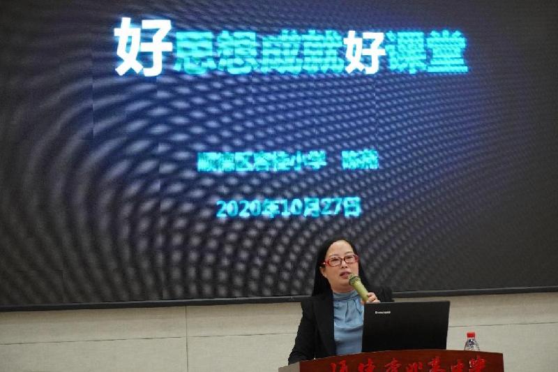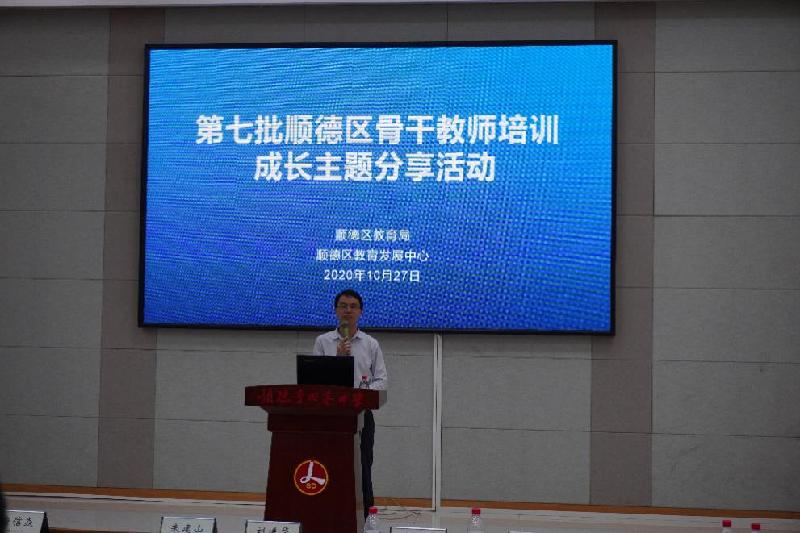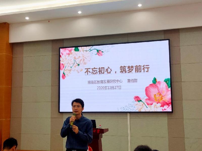 金秋送爽,順德教壇顯生機;名師引領(lǐng),鳳城后浪欲爭先。2020年10月27日,順德區(qū)第七批骨干教師在做好了各項防疫措施的前提下,齊聚李兆基中學(xué),開展了為期一天的集中學(xué)習(xí)和研討?;顒拥拈_始,順德區(qū)教育局劉進華科長簡要總結(jié)了本批骨干教師兩年半的培訓(xùn)和成長,并為此次集中培訓(xùn)表達了殷切的期待。