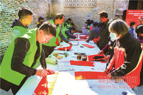 當(dāng)天一大早,羊額月池何公祠就聚集了一批書法名家,即席揮毫為市民免費寫春聯(lián)。據(jù)悉,倫教組織書法名家為市民免費寫春聯(lián)活動已經(jīng)延續(xù)多年,深受市民歡迎。今年活動繼續(xù)開展,1月2日至2月10日期間,倫教藝術(shù)文化協(xié)會、倫教街道書畫協(xié)會的一眾書法家(文化志愿者)將到各村居開展義務(wù)為民寫春聯(lián)送?;顒印?/p>